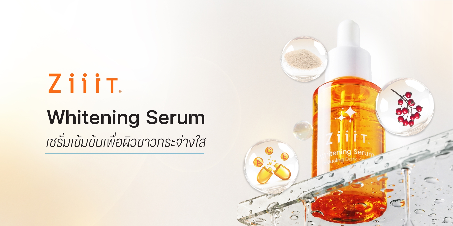 เซรั่มเข้มข้นเพื่อผิวกระจ่างใส ลดเลือนจุดด่างดำ และปรับสีผิวให้สม่ำเสมออย่างปลอดภัย ZiiiT Whitening Serum พัฒนาขึ้นเพื่อจัดการปัญหาผิวหมองคล้ำ จุดด่างดำ และสีผิวไม่สม่ำเสมอ ด้วยการทำงานแบบองค์รวม ครอบคลุมทั้งการยับยั้งเม็ดสีเมลานิน, ลดการสะสมของจุดเม็ดสีจากวัย (Melanin & Lipofuscin), ฟื้นฟูเซลล์ผิวจากอนุมูลอิสระ, และเสริมความชุ่มชื้น โดยผสานสารออกฤทธิ์ประสิทธิภาพสูง 5 กลุ่มหลัก พร้อมสารบำรุงเสริมที่อ่อนโยนและปลอดภัย